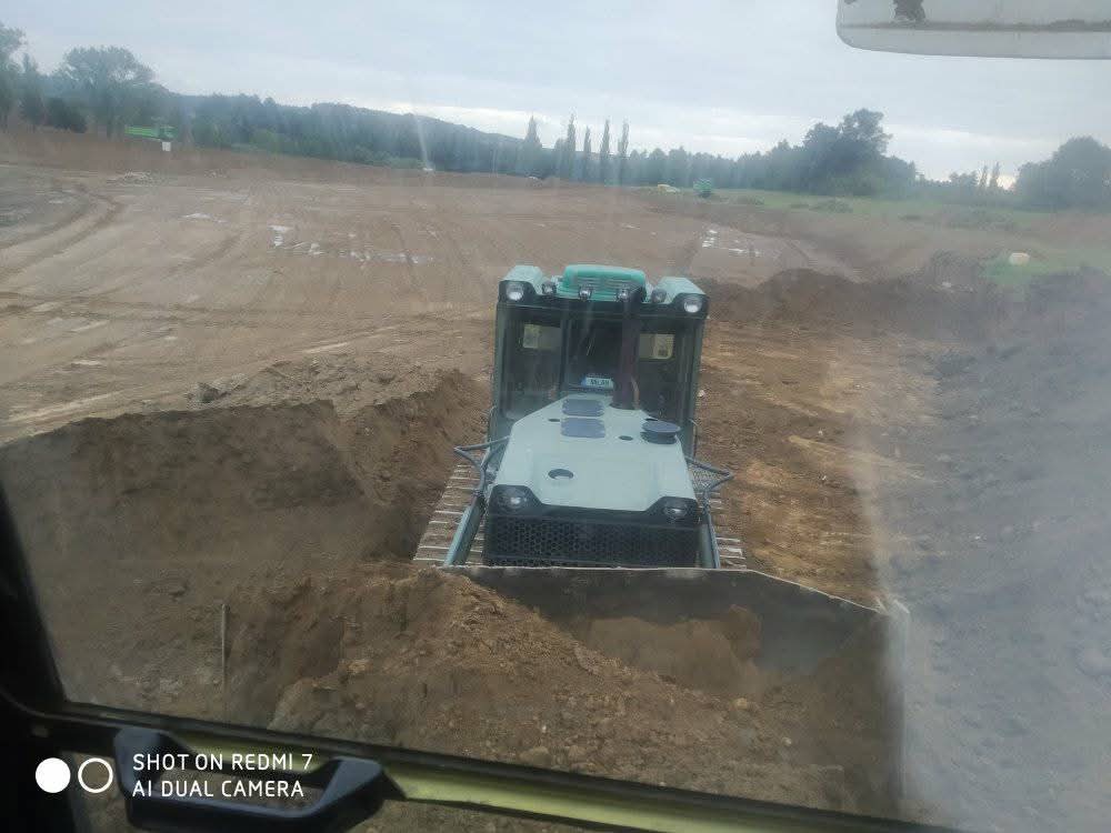 Skrývka ornice buldozerem.